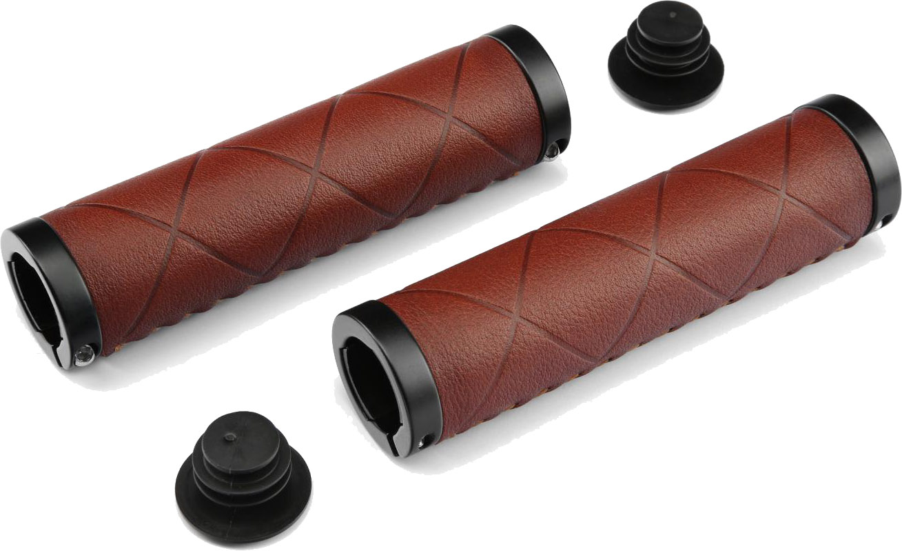 Håndtagsæt fra Bikepartner i ægte læder (brun). Eksklusivt håndtagssæt str. 2 x 130 mm Låsering i begge ender af håndtagene.