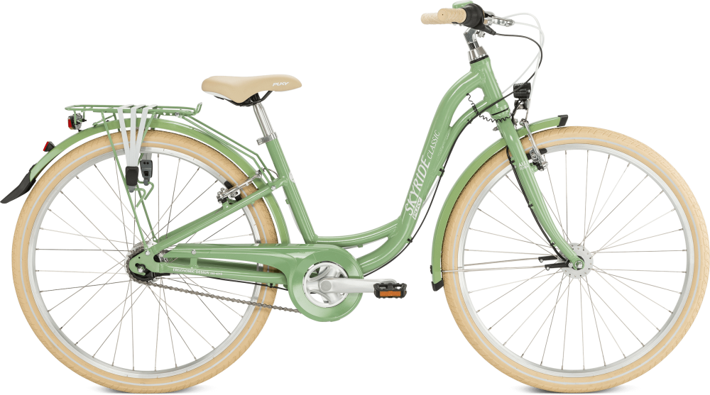 Med Puky Skyride 26-7 kan dit barn komme ud og opleve verden på en stilfuld og moderne måde! Denne børnecykel er udstyret med letvægtsaluminiumskomponenter, fuld STVZO-udstyr og en bagagebærer, hvilket gør SKYRIDE til en pålidelig følgesvend på ture og eventyr. Den moderne ramme er designet specielt til piger og er både flot og praktisk. Med PUKY Skyride 26-7 er det nemt at cykle og have det sjovt, uanset om man skal i skole, besøge venner eller tage på en spændende tur med familien. Cyklens letvægtsaluminiumskomponenter gør det nemt for dit barn at komme op og køre, mens det fulde STVZO-udstyr, herunder lygter og reflekser, holder barnetsynlig og sikker på vejen. Med den praktiske bagagebærer kan dit barn tage alt, hvad der er behov for, med på turen. Specifikationsliste:. – Shimano Nav Dynamo lygter. – Letvægts aluminium. – 7-speed Shimano gear. – Fodbremse og håndbremse. – Bagagebærer. – Aldersgruppe: 10+ år.