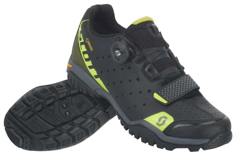 SCOTT Trail Evo GORE-TEX sko er en alsidig sko helårs sko / vintersko der kan benyttes til alle køre forhold. Den holder dig tør og har en afslappede pasform, Vibram gummi ydersål og walk-friendly nylon chassis holder dig stærk på og uden for cyklen. Boa