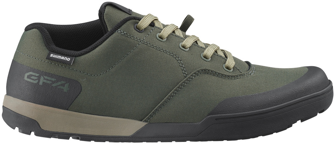 GF4 er en komfortabel sko med flad sål, designet til ryttere, der søger pålideligt greb og afslappet stil. Den er udstyret med SHIMANO ULTREAD GF gummiblanding, der sikrer fantastisk pedalgreb og kontrol. Halvlængde EVA-skumlag absorberer stød, mens den å